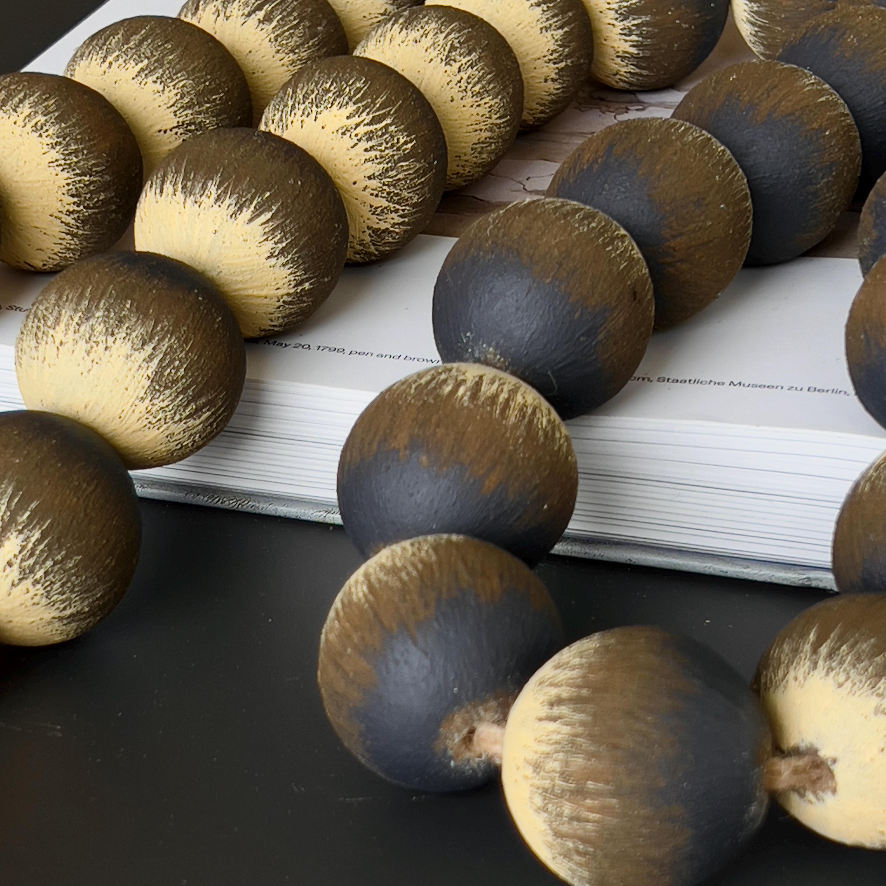 Each bead is made from natural wood and finished by hand to preserve surface variation, grain, and tactile quality.