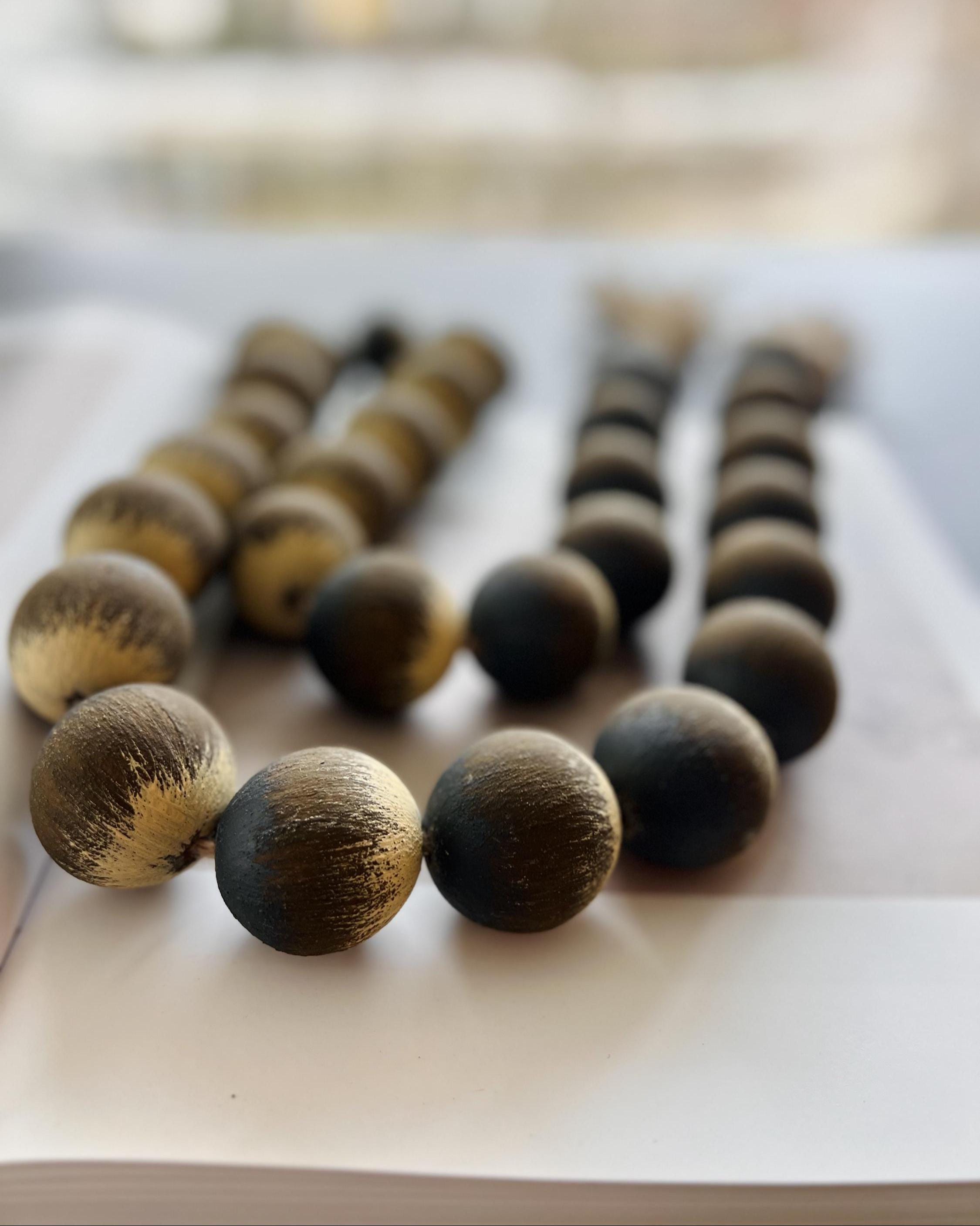 This wood bead garland complements rustic, farmhouse, and Scandi interiors, adding texture and warmth without visual clutter.