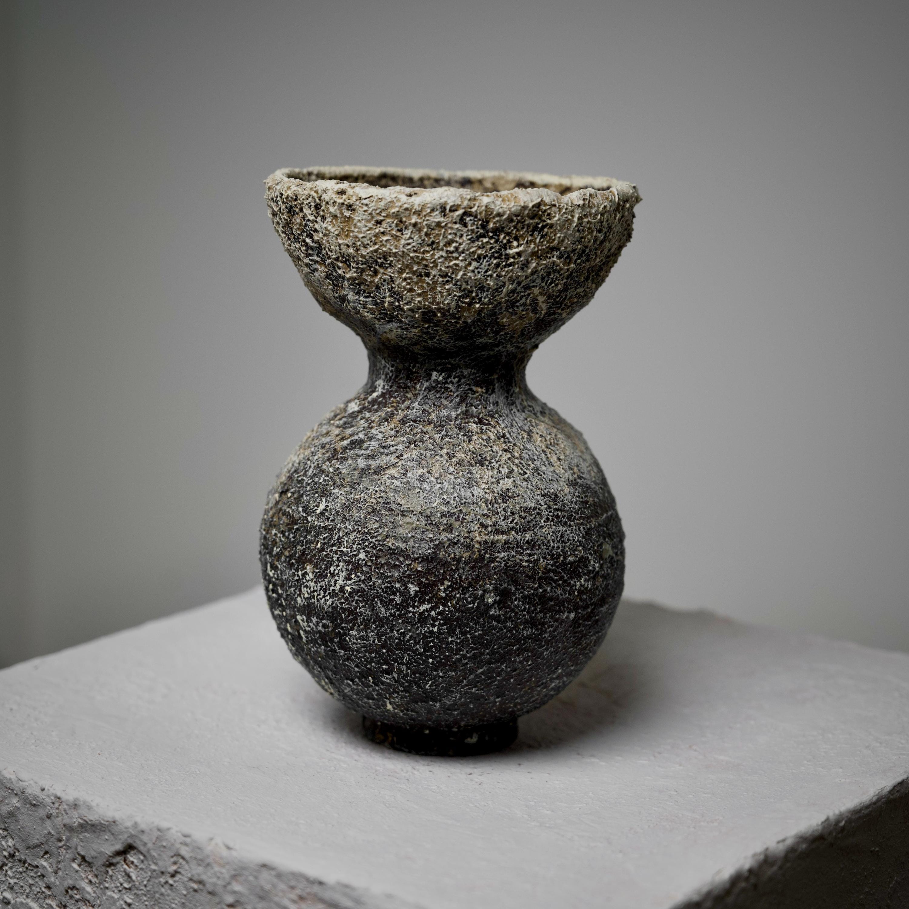 This one-of-a-kind textured vessel brings quiet presence, material depth, and organic stillness to modern and minimalist interiors.