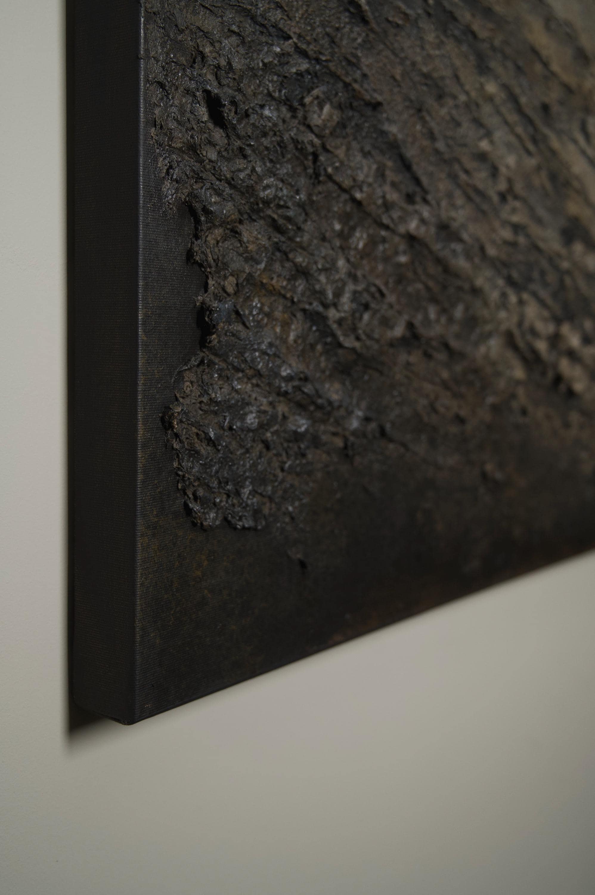 This work from the Ridges series is built through layering, compression, and natural drying processes, forming a dense, sculptural surface. Paper clay, natural clay, sand, charcoal, and pigment are integrated into the structure, creating a mineral, time-shaped presence.